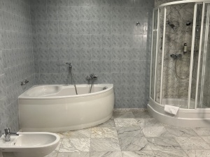 The Suite reflects luxury and elegance. Perfectly selected functional furniture and the unique interior style result in a high standard of the rooms. Additional features include a spacious bathroom, both with a bathtub and a shower. The bedroom features a comfortable queen size bed.